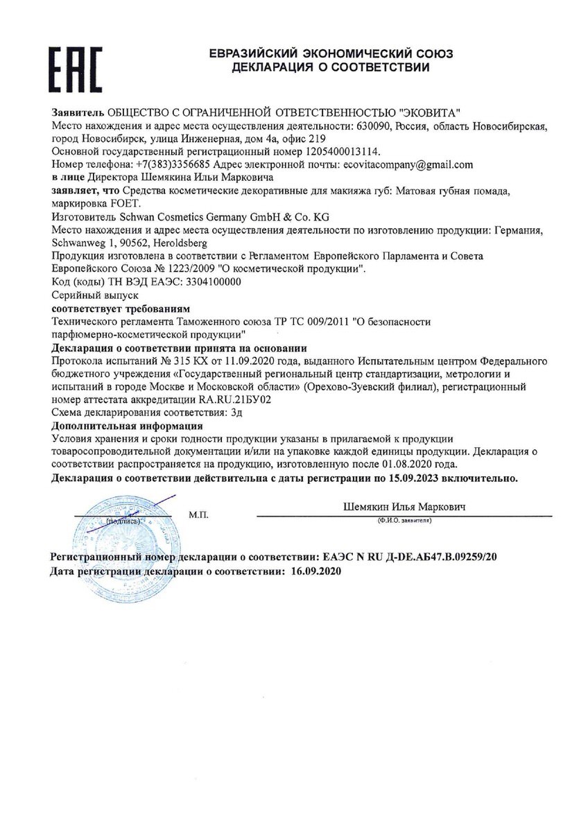 Применение: небольшое количество помады аккуратно нанесите на губы.