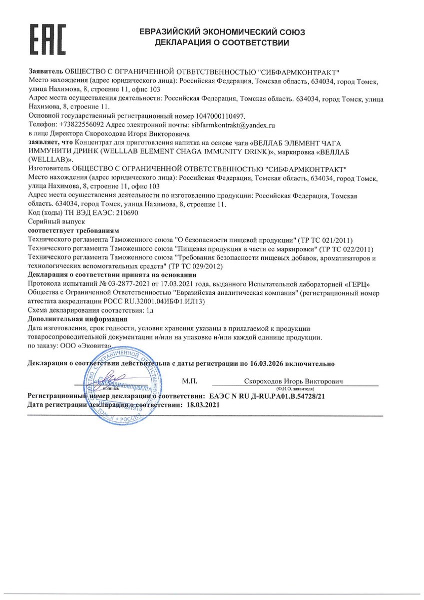 НАИМЕНОВАНИЕ И МЕСТО НАХОЖДЕНИЯ ИЗГОТОВИТЕЛЯ: ООО «Сибфармконтракт», Россия, 634034, г. Томск, ул. Нахимова, 8, стр. 11.